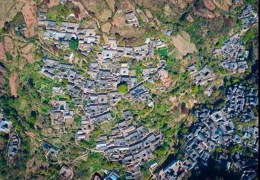 諾鄧村地處深山,最高處的玉皇閣,海拔達(dá)2300米。全村除了東面山麓“龍王廟”后面有一小塊較平坦的臺地外,所有的民居幾乎都建在山坡上。從山頂?shù)缴侥_,層層疊疊的房子就像掛在半空中一樣。