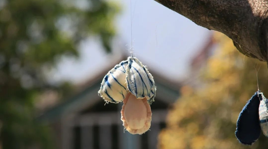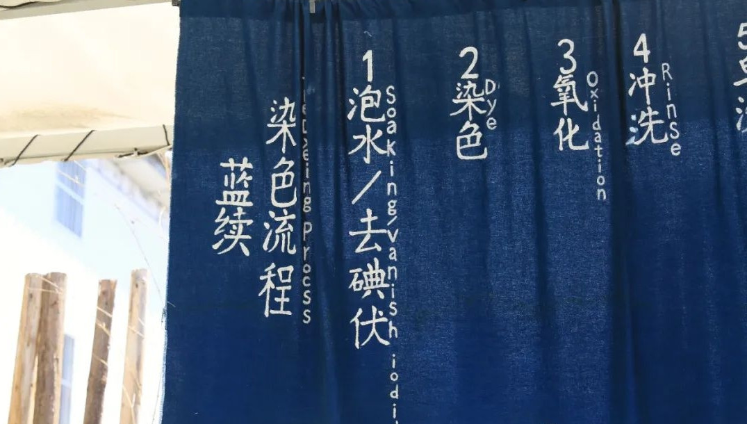 在藍續(xù),扎染布匹隨風而舞,陽光透過枝杈灑下斑斕光影,提供古法扎染的制作與體驗。 白族扎染技藝,經(jīng)國務院批準列入第一批國家級非物質(zhì)文化遺產(chǎn)名錄。