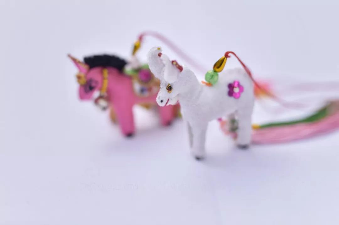 小個(gè)兒的仙鶴、蛇、老虎、金雞,飛馬……串成一串串的,定睛一看,發(fā)現(xiàn)同一只老鼠都有不同的造型,有的偏向平板,有的則十分立體。猴子的模樣也是經(jīng)過多次“改版”,包括所用的毛料、面部的造型和整體的神態(tài)都有差別,有的嘴角上揚(yáng),憨態(tài)可掬;有的則是雙手作揖,一臉機(jī)靈勁兒。