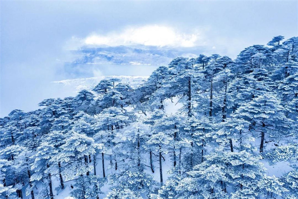 “小雪封山,大雪封河”,太極頂上,雪花給群山換上銀裝,世界沉浸在一片銀白色里。