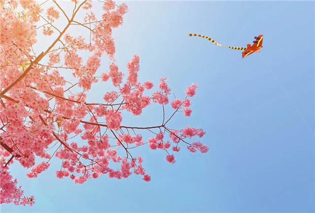 這花配這山是極好的。冬櫻的驕傲,讓她不屑與其他花兒在春日里挨肩擦背,寧可獨(dú)自在冷峭中綻放。一簇簇、一堆堆的花朵在凜冽的風(fēng)中不損半分嬌艷,花枝搖擺起來,反而像在嘲笑冬風(fēng)的無力。