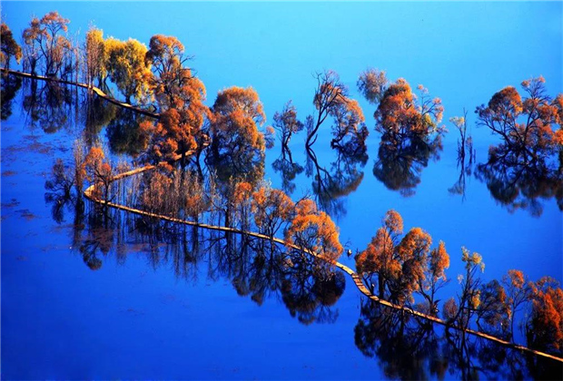 金秋時(shí)節(jié),漫步在龍?zhí)杜希辞嗌诫[隱水迢迢,賞樹樹皆秋色,沉浸于詩意的時(shí)光里。