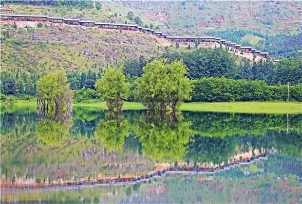 行走在生態(tài)文化長廊,俯瞰藍(lán)天白云、水波瀲滟,賞韻味無窮的翰墨丹青,觀斗拱回環(huán)、檐柱交叉的結(jié)構(gòu)之美。
