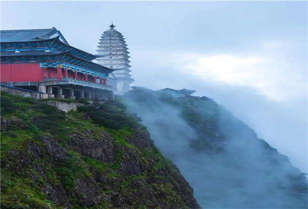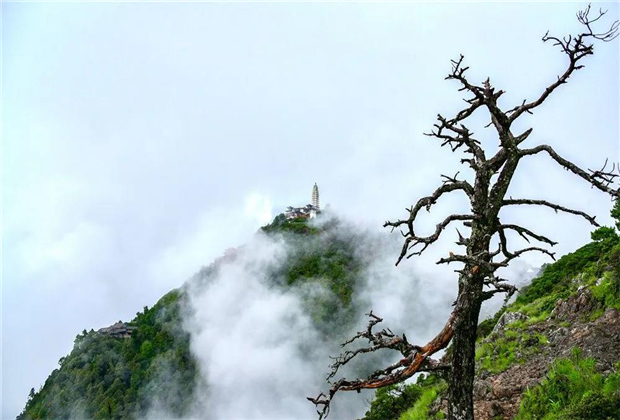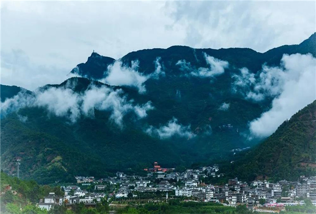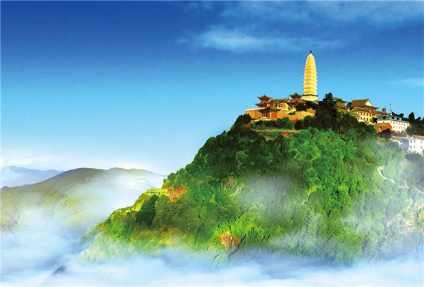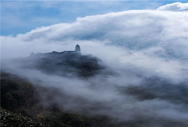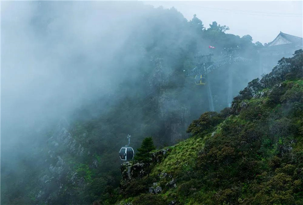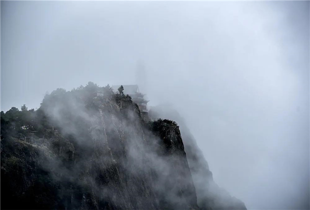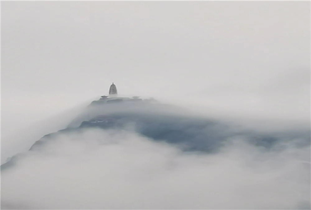 蒙蒙細(xì)雨下,青翠蔥蘢的雞足山云霧繚繞,或輕飄漫舞,或怒濤排空,仙氣氤氳,霧在山中游,山在霧中行,儼然一副潑墨山水畫。