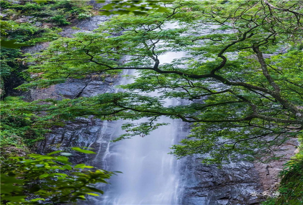 緩步而行,忽然,“嘩嘩嘩”的流水聲在耳畔響起,目之所及,瀑布爭流,泉水清澈,急如飛珠碎玉,甚是壯觀。
