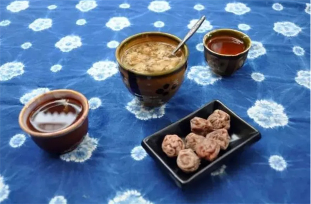 米酒乳扇羹是大理當(dāng)?shù)赜忻囊坏捞厣朗?。鍋?nèi)倒入適量的水燒開(kāi),將醪糟倒入沸水中攪勻,再打入雞蛋攪勻,加入白糖調(diào)好味的勾芡,再放入切碎的乳扇,起鍋即成。