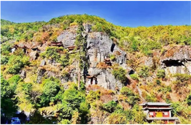 山上山巖嵯峨,松林蒼翠。峭壁上,歷代名人的題字高鐫于上,道勁雄渾、氣勢非凡。旅行家、地理學(xué)家徐霞客也因“愛其幽靜,為息閣中作記半日”,在此流連忘返,寫下膾炙人口的游記。
