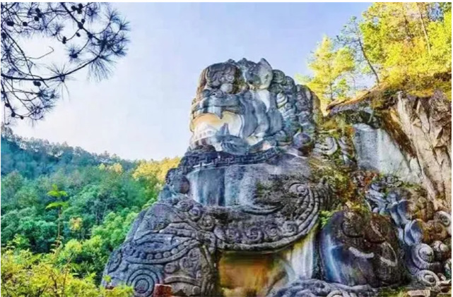 除此之外,還有高25米、長15米、寬12米的“千獅王”,為國內(nèi)外罕見的石雕巨獅,被雕刻在海拔2780米的千獅山(滿賢林)懸崖峭壁主峰的天然大巖石上,是目前全世界體積最大的獅子。
