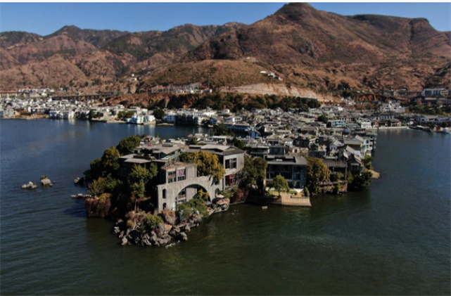 用無(wú)人機(jī)飛至上空,俯瞰整個(gè)南詔風(fēng)情島,目光都被眼前這座覆蓋著郁郁蔥蔥植被的小島所吸引,在奇異獨(dú)特的地形地貌中,猶如一把巨梭,靜臥在藍(lán)天之下,碧水之中的洱海中上游,在碧波蕩漾的水面上熠熠生輝。