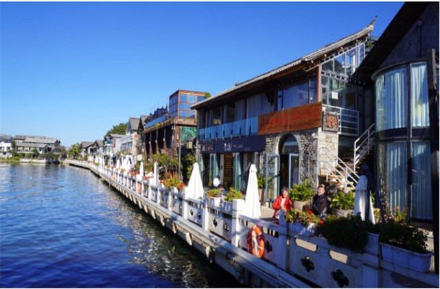 去島上的途中會(huì)看到馬路兩邊都是白族特色的房屋,這里大部分都是改造以后的民宿,所以如果選擇住在這里的話也很方便,除此之外,這兩邊的特色店鋪也很多,不管是當(dāng)?shù)靥禺a(chǎn),還是咖啡、茶館,樣樣俱全。