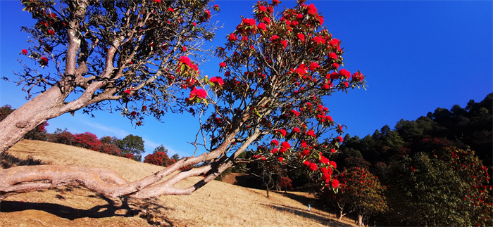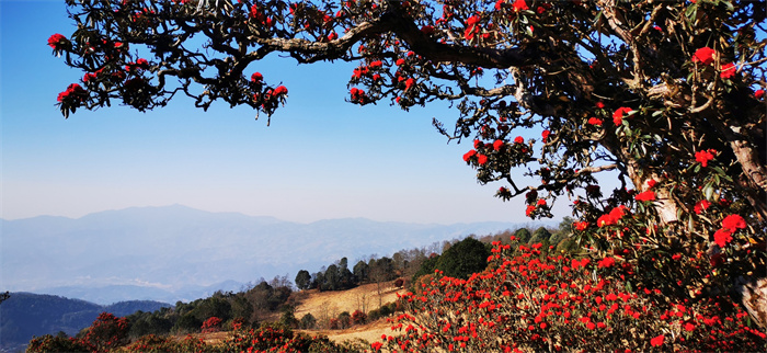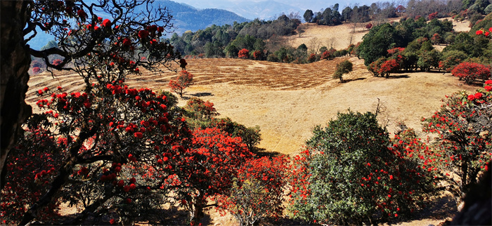 云南省大理白族自治州漾濞彝族自治縣官房坪的杜鵑花,每年三、四月份開(kāi)放,花開(kāi)時(shí)節(jié),紅色占據(jù)了整個(gè)山坡,映紅了蒼山西坡的溝溝壑壑。