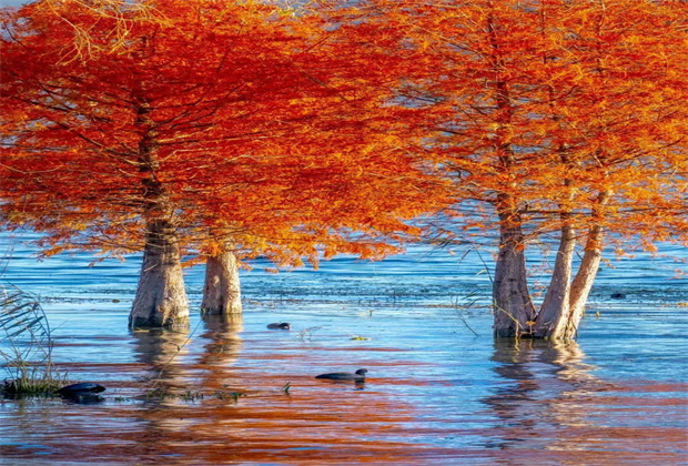 灰鶴、白骨頂、灰雁、赤麻鴨等候鳥