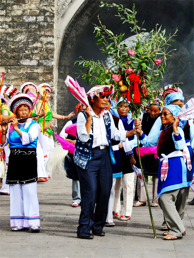 “繞三靈”是白族歌舞、音樂(lè)、器樂(lè)的大會(huì)演,也是承載白族歷史、宗教、文學(xué)等傳統(tǒng)精神文化的活動(dòng)。2006年5月,白族“繞三靈”被列入國(guó)家級(jí)非物質(zhì)文化遺產(chǎn)保護(hù)名錄。