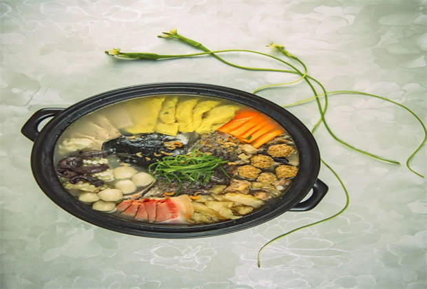 大理砂鍋魚是大理地方名菜之一,味道鮮美可口,是吃貨的福音。大理砂鍋魚以洱海魚為原料,用祥云特制砂鍋里烹煮,再以菜葉為鋪墊,整道菜呈現(xiàn)出了一番飄紅映綠的景象。其做法是將嫩雞片、冬菇等十余種鮮臘配料,再加上洱海出產(chǎn)的弓魚或黃殼魚慢慢燉成。煮制成熟,揭開鍋蓋,鮮香撲鼻,湯鮮肉嫩,入口連綿不絕,營養(yǎng)豐富,是白族人民待客的上等佳肴,深受大家的喜愛。