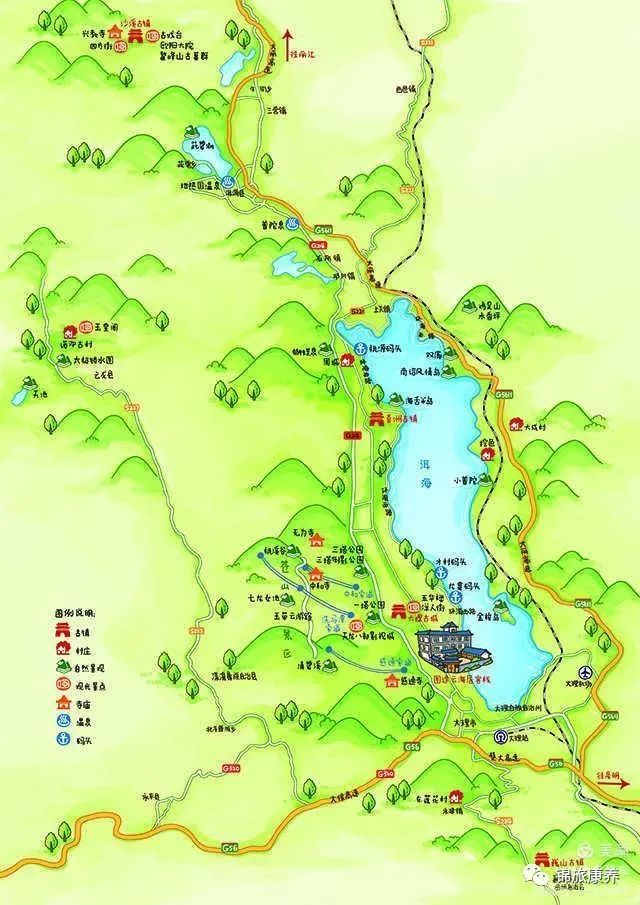 洱源縣地處麗江、大理、迪慶三大風(fēng)景區(qū)的樞紐地帶,有良好的區(qū)位優(yōu)勢(shì)和風(fēng)格多樣的旅游資源。境內(nèi)風(fēng)景區(qū)名勝眾多,多達(dá)200余處,可分為西湖、茈碧湖、海西海、鳥吊山景區(qū)。茈碧湖清如碧玉,它不僅盛產(chǎn)“巳時(shí)開放而未時(shí)收”的珍稀植物“茈碧花”而著名,而且還因湖中奇異的“水花樹”和羆谷山麓宛若世外桃源的梨園景色而令人神往;西湖水鄉(xiāng)湖中有村,村中有湖,柳岸蘆灣,煙渚漁歌,“翛翛然有江南風(fēng)景”;海西海青山環(huán)抱,漪瀾靜謐;鳥吊山松濤窸窣,杜鵑燦爛,更有百鳥朝鳳的奇觀。境內(nèi)還有許多奇峰幽洞、林海甘泉,以及霧蒸霞靄的溫泉、如雪花撒落的梅園。