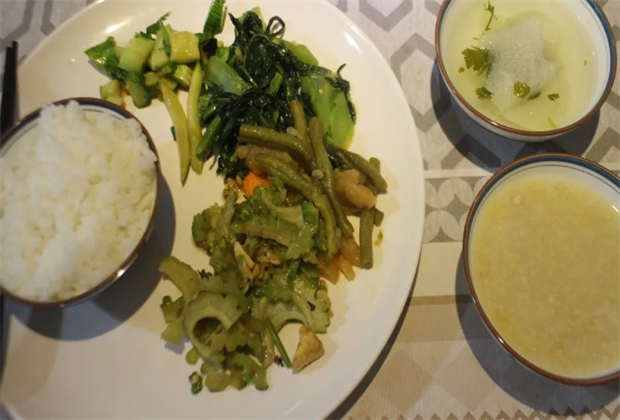 雨聲小了,一只貓咪在喵嗚喵嗚地叫喚。我已熟悉它的聲音,卻還沒有見過它。我出門去吃午飯,走向距離我最近的一號食堂,親善堂。如果步行100米,只花10塊錢就能吃上一頓有機(jī)素食自助,輕松滿足食材多樣化的需求,那我是不是并不需要大冰箱?
