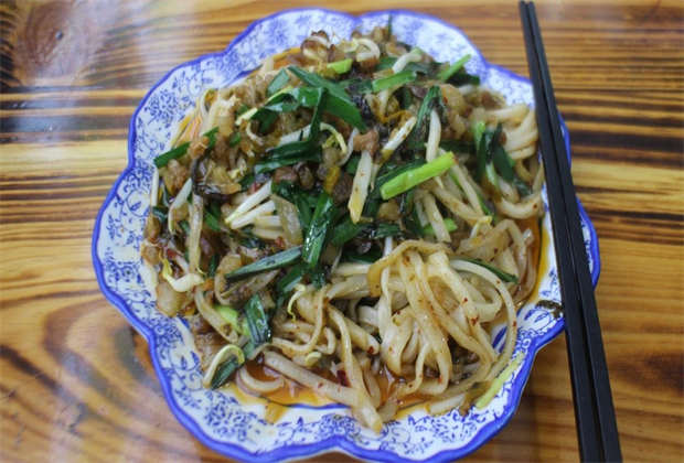 我記憶中最美味的炒餌絲,還是十年前在巍山吃的。印象中那碗炒餌絲十分干爽,沒有過多的油脂,帶著鑊氣和焦香。我從微博里搜出了當(dāng)時的記錄:“早就看到街上嚯嚯有聲的炒餌絲,感覺會好吃。今天點(diǎn)了一份,才6塊錢,韭菜白菜酸菜加牛干巴似的肉末,果然美味!” (感慨巍山當(dāng)時的物價)
