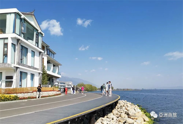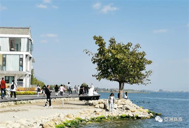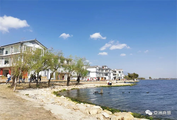 網(wǎng)上紅爆的磻溪村S彎就是在喜洲古鎮(zhèn)附近,當?shù)鼐用褚园鬃鍨橹鳎罱l(fā)展旅遊業(yè),將白族的房屋改建為民宿,民宿極近湖邊,有廣闊的視野觀賞蒼山洱海的美景。磻溪村S彎每年冬春季節(jié)可以看紅嘴鷗(白色),小野鴨(黑色),夏天看白露,是青年人打卡或新婚夫婦拍婚紗照的好地方。