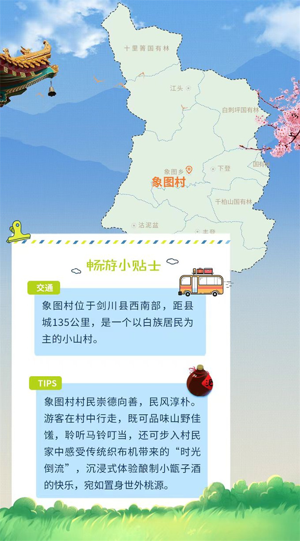 村內(nèi)古水井、古戲臺(tái)、古照壁、古民居、古道、古樹一應(yīng)俱全。象圖村人講白語,多以種植業(yè)和養(yǎng)殖業(yè)為生,村內(nèi)婦女擅長用傳統(tǒng)織布機(jī)手工織布、用小甑子釀制大麥酒,并以此聲名遠(yuǎn)揚(yáng),被稱為“云南省內(nèi)山上白族第一村”。