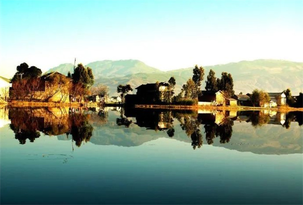 零星地開在墻上的白花,在秋日余暉中那樣地奪目,那是唐朝跳湖殉情的白潔夫人遺下的忠告——慈善愛民,堅(jiān)貞不屈?波光粼粼,逶迤千里,那是一代名士的泛湖唱和詩光?風(fēng)從湖面飄來,遙遠(yuǎn)而清晰,那是當(dāng)年徐霞客跌落湖中的嘆喟:“汀港相間,曲折成趣,深處則曠然展境,夾處則窅然罨畫,翛翛然有江南風(fēng)景,而外有四山環(huán)翠,覺西湖又反出其下也……”