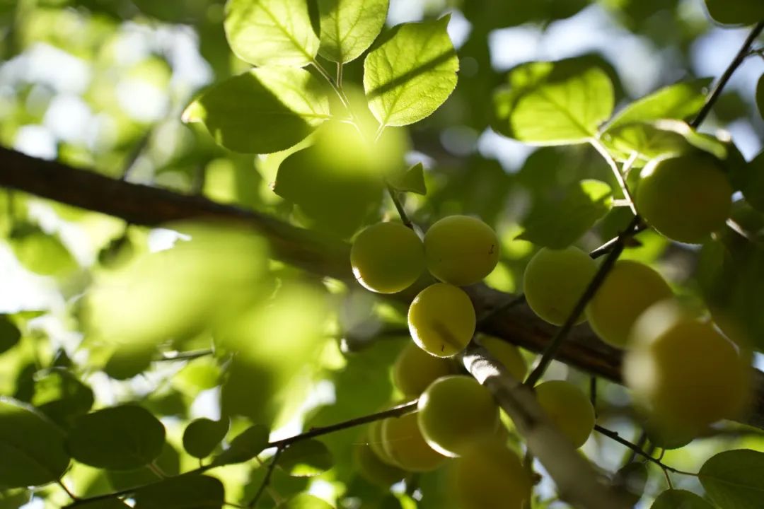 郁郁蔥蔥的樹上,梅果綴滿枝頭