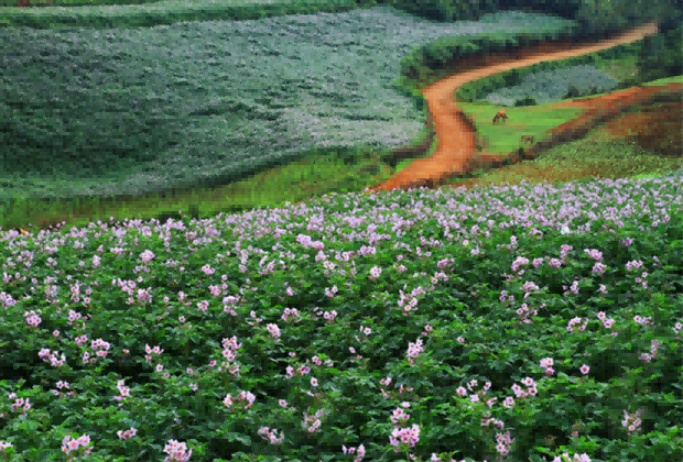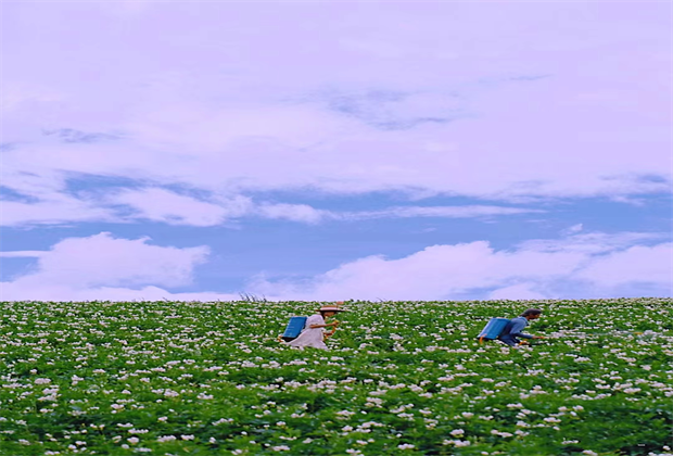 只是無意走了一條沒有走過的路,便見到了大理夏天的美,漫山遍野的洋芋(土豆)花,白的紫的,競相盛開,朵朵簇擁在枝頭,猶如一串串小風(fēng)鈴,微風(fēng)輕撫過花朵,仿佛能聽見悅耳的笑聲,站在高處放眼望去,風(fēng)兒吹過,白色的花兒輕輕搖擺,在綠海中顯得格外清新,路邊的阿叔說,土豆花還沒到最盛的時候,沒全盛開就那么美,那全開的時候得有多美
