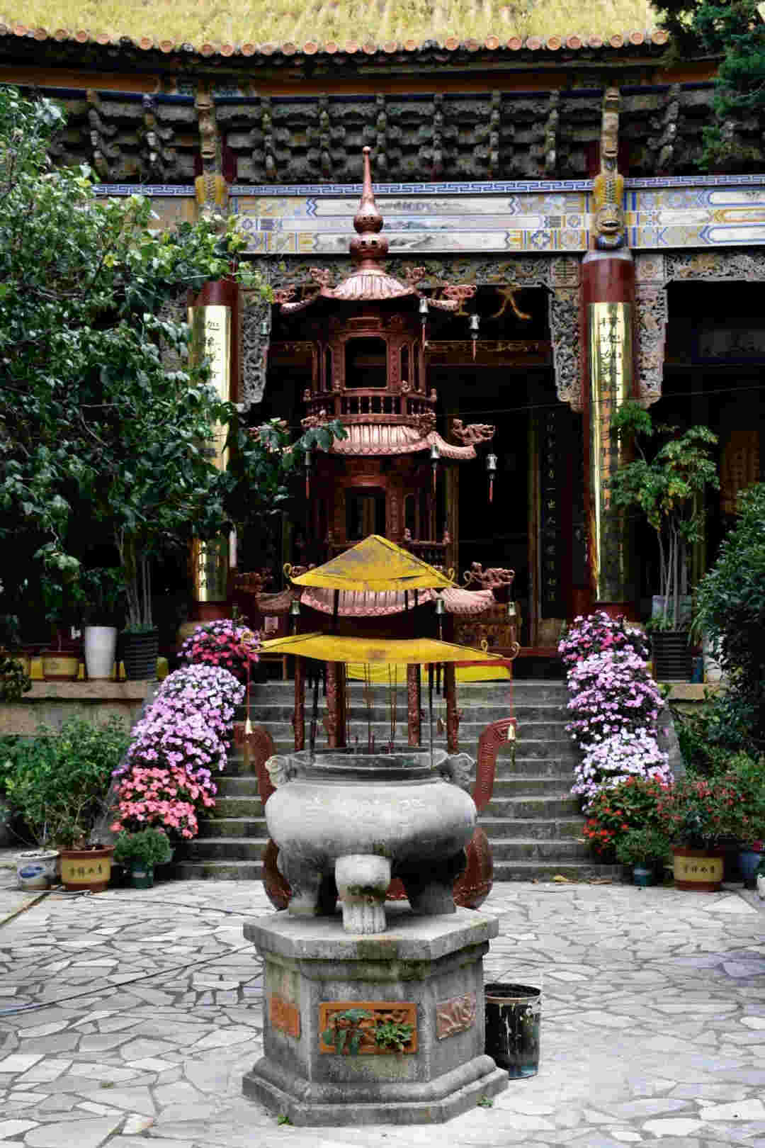最先到的,是普濟(jì)寺。下午時分,陽光灑下,普濟(jì)寺門口的竹子搖搖晃晃,像是樂得悠閑。寺里有棵古樹,枝繁葉茂,生機(jī)勃勃。