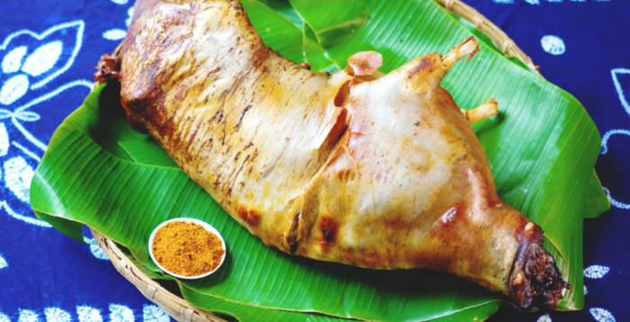 在漾濞,人們常以烤全羊款待賓客,一只只烤熟后的肥羊外焦里嫩、鮮而不膻,令人垂涎欲滴。漾濞烤全羊已經成為響當當?shù)囊粋€招牌,帶動了漾濞縣休閑度假旅游業(yè)的發(fā)展??救蛲獗斫瘘S油亮,焦黃脆香,里肉則鮮嫩可口,香味撲鼻。以刀分割成二至三指寬窄的小塊小條,置于盤中,佐以醬油、油辣椒等,動箸開餐,軟脆清香。再點上一份核桃大餐,佐以清酒,在美妙的滋味中沉淪。