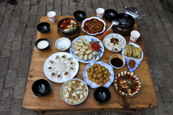 “寧可一日無肉,不可一日無豆?!睆浂擅莒砣怂坪跆貏e鐘愛豆腐,勤勞智慧的人們用珍珠泉水制作而成的豆腐質地柔韌、入鍋不爛,一塊豆腐便可做一桌“滿漢全席”。走進文盛街的一家農家樂,品味通過炸、煮、蒸、炒、煎等方法烹飪的豆腐宴。豆腐丸子、麻辣豆腐、開心豆腐、雞蛋松豆腐……每一道菜品都色香味俱全,慰藉著食客舌尖上的鄉(xiāng)愁。