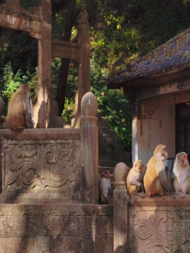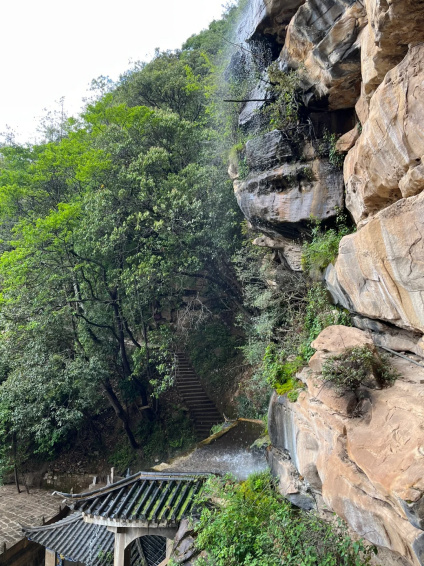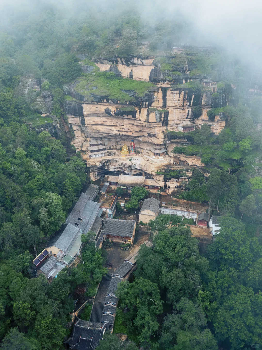 寺內(nèi)佛像依于崖壁而建,飛瀑垂簾,聳巖含閣,山上被濃霧籠罩,山下還有些很多猴子松鼠跑來跑去,到那邊的一瞬間,就感覺自己穿越到了一個隱世的修仙門派!