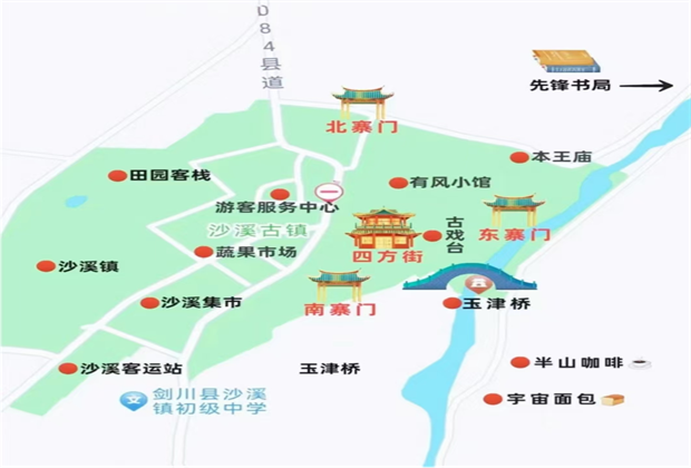 寺登街--歐陽(yáng)大院--有風(fēng)小館--古戲臺(tái)--興教寺--南古宗巷--小賣部--大樹--南寨門--玉津橋--方合客棧--北寨門--五月念客棧