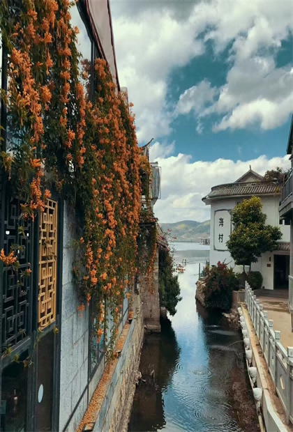 都說大理風(fēng)光在蒼洱,蒼洱風(fēng)光在雙廊,雙廊被稱為蒼洱風(fēng)光第一鎮(zhèn)。作為千年漁村的雙廊古鎮(zhèn),它地處大理市洱海東北岸,東靠佛教名山雞足山,西跳蒼山十九峰,門臨洱海萬傾波。古鎮(zhèn)三面環(huán)山,一面緊靠碧波蕩漾的洱海,被稱為“蒼海風(fēng)光第一鎮(zhèn)”,景色古樸優(yōu)美,充滿著文藝清新的氣息,賞洱海風(fēng)光,將秀麗風(fēng)光盡收眼底。在上關(guān)花,下關(guān)風(fēng),蒼山雪,洱海月“風(fēng)花雪月”的大理,雙廊的美,是那種吹著細風(fēng),置身花海,沐浴著千年文明的愜意。走在這里,仿佛置身歐洲小鎮(zhèn),鮮花滿目,空氣干凈澄澈。