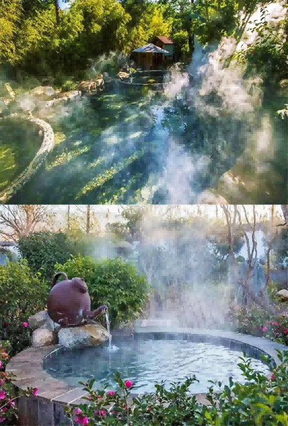大理地?zé)釃?guó)位于洱源縣茈碧湖畔,占地近千畝,且融自然風(fēng)光與名勝古跡為一體,曲徑通幽,小橋流水,一步一景。進(jìn)入大理地?zé)釃?guó),園中心有一個(gè)大滾鍋,熱氣騰騰,多個(gè)形態(tài)各異的露天溫泉池點(diǎn)綴在旁,云蒸霞蔚,盡顯“九氣朝蒸”之奇觀。