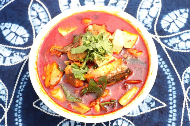 3、酸辣魚:大理的傳統(tǒng)美味,宴席必備菜之一。當新鮮鯽魚和酸木瓜、梅子醋相遇,酸辣湯淋上大米飯,真正體會到