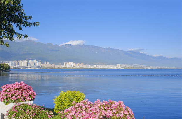 洱海的藍是調(diào)色盤上的意外——乘一艘船向湖心去,看陽光碎成千萬片銀鱗;騎一輛單車沿生態(tài)廊道追風,讓衣角沾滿