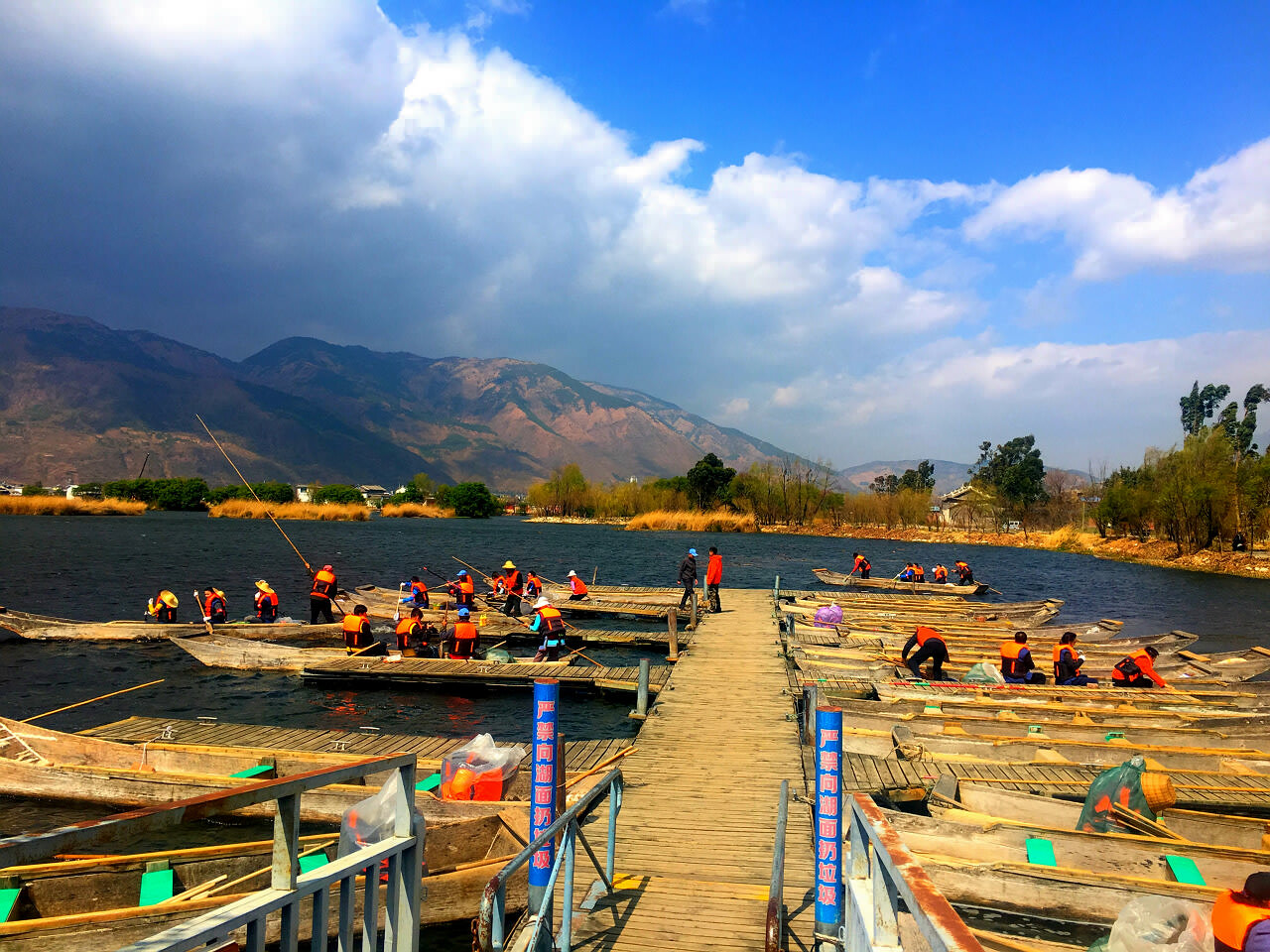 清代鄧川舉人楊承淳賦詩(shī)贊云:“湖光蕩漾幾回紋,漁父歌聲鬧水濱,信口舢敲湘漢句,斷腸弄笛雁鴻云。三三對(duì)白煙蓑合,兩兩歸帆獲岸分,最趁夕陽(yáng)含缺處,前村沽酒帶余醺。”
