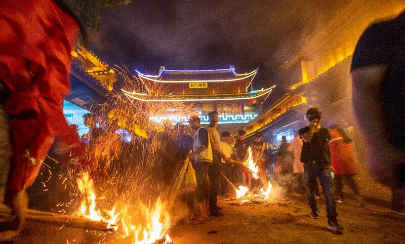 火把節(jié)是巍山流傳最廣的節(jié)日。每年的農(nóng)歷六月二十五這天,巍山人一大早就走出家門,采購節(jié)日用品。天色將晚,家家戶戶點起小火把,縣城廣場中央點起大火把,大家圍著火把縱情狂歡,整個巍山成了歡樂的海洋……