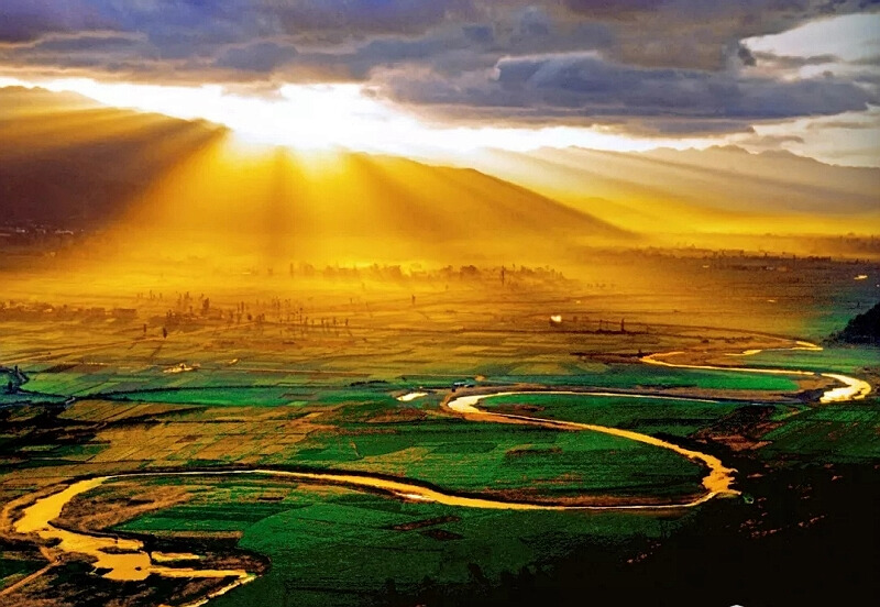 紅河孕育了古南詔國的文明,催生了云南各民族絢麗多彩的民族文化,滋潤了云南廣博的山川土地。紅河的發(fā)源地就在巍山一個靜謐而美麗的小山上,在源頭的旁邊豎立著一塊刻有“大紅河源、額骨阿寶” 的石碑。在彝族話里“額”是水之意,“骨”是彎彎曲曲,“阿寶”則是父親的同義語,連起來就是一條彎彎曲曲的父親河。與世界上其他被稱為母親河的河流不同,只有紅河被稱為父親河,這就是所謂的“紅河雄風(fēng)”,盡管它出發(fā)的態(tài)勢波瀾不驚,卻注定要奔向洶涌澎湃的大海!