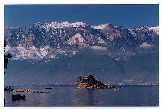 讀盡秋季的風云變幻,千古絕唱,讓我們回過頭來,細細品味蒼山夏日的充沛與明朗。從洱海的西岸向東眺望雄性的莽莽蒼山,常常是在雨后初晴的時節(jié),碧空如洗甚或有彩虹飛架的時候,在蒼山的胸前,清新的翠綠顯出誘人的嫵媚,如果你恰好來到盈動著的洱海水邊,我們會幸運地見到,也是在蒼山雄渾的胸前,一條潔白的云帶在婀娜多姿地飄蕩開來,幾乎糸住了曾經(jīng)奔放不羈的十九座偉大的山峰。玉帶云,我們身邊的云,我們頭頂上的云。而如果在此時,你滿懷難以抑止的激情走入玉帶云中的玉帶路,伸手可捕捉縷縷云氣,你會發(fā)覺曾經(jīng)離我們?nèi)绱诉b遠的美麗云霧,離我們又是這樣的親近。趁著這飄飄欲仙的感覺,輕輕地踏上浮云繚繞中的玉帶路吧,我們就此走入蒼山的深處,走入飄渺的云端,進入清涼潔凈的天界。這里有飛瀑流泉之景,這里有曲徑通幽之境。而一旦云散天開,從云窗所透露出的天路之上,玉洱風光一覽無余,只見湖岸美麗而樸實的村莊星羅棋布,陽光將田野涂抹得一片絢爛,于是頓覺神清氣爽,眼界與胸襟大為開闊,我們似乎又找到了只有夢中才有的迷人幻境。