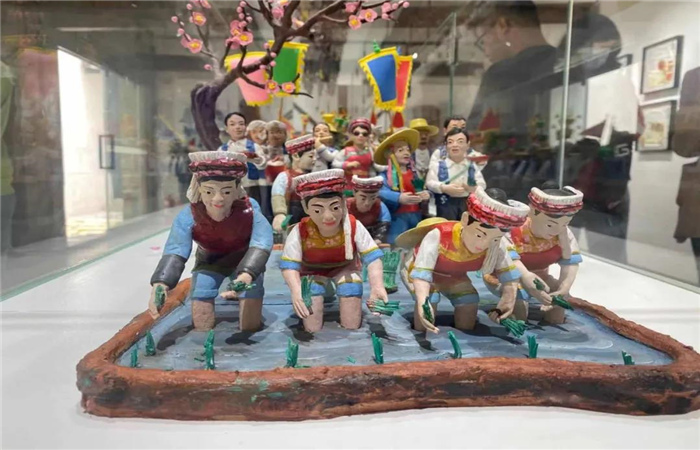 “秧之館”呈現(xiàn)的是一系列關(guān)于人的內(nèi)容。比如《開秧門》——喜洲最具代表性的農(nóng)耕文化活動(dòng)。每年的插秧時(shí)節(jié),當(dāng)?shù)卮迕穸紩园l(fā)組織大型的開秧門儀式,從祭祀、游街、插秧到田間民樂、吃秧飯,整整一天的時(shí)間,僅儀仗隊(duì)伍就多達(dá)兩百多人。