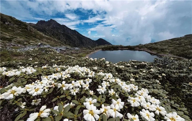 在玉局峰與龍泉峰的交接處,海拔近4000米,鑲嵌著被稱為“山巔之湖”的洗馬潭。滿山滿坡的杜鵑花將沿著棧道、觀景臺(tái),一路伸到游人眼前。