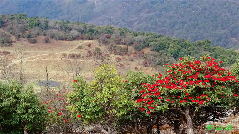 “蒼山西坡大花園”是蒼山西坡腹地一片高山草甸,水肥草美,鮮花遍地,牛羊悠閑。春天,山坡上開(kāi)滿了火紅的、紫紅的、白的杜鵑——這是原生于陡坡上、足有300多畝的大樹(shù)杜鵑,它們一棵接一棵,一片連一片,似是大樹(shù)的原始森林,或是杜鵑的海洋,讓人嘆為觀止。