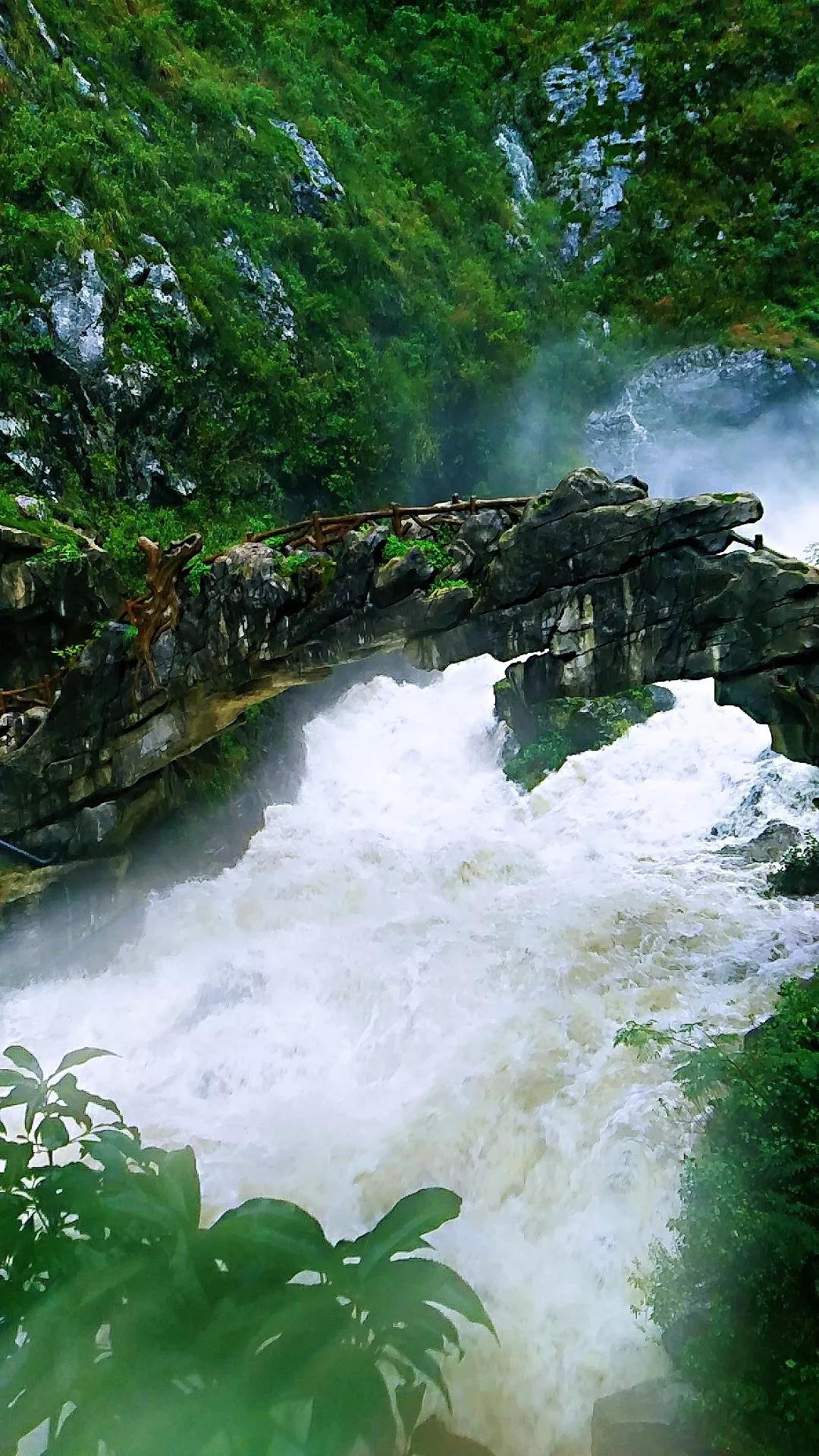 漾濞石門(mén)關(guān)位于蒼山龍泉峰與玉局峰西麓,兩座高數(shù)百米的斷崖峽谷,形如兩扇巨大的石門(mén),清流飛瀑,奔瀉而出,是一處神奇的景觀。周圍巉巖壁立,峽谷深邃,谷地溪流湍急。石門(mén)關(guān)實(shí)為鬼劈神鑿,異境開(kāi)天,具有“一夫當(dāng)關(guān),萬(wàn)夫莫開(kāi)”之勢(shì)。