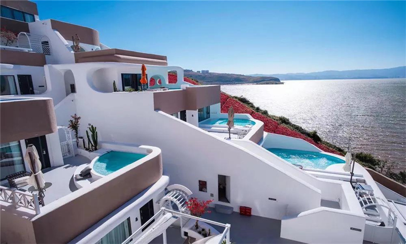 陽光,藍(lán)天,碧海,日落……大理理想邦半山酒店詮釋了人們對(duì)愛琴海的無盡向往,被網(wǎng)友稱為“中國(guó)的圣托里尼”。