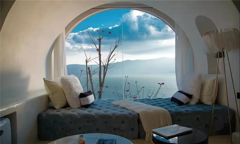 海東方懸崖海景Villa借鑒地中海的建筑風(fēng)格,融絕美洱海景致與室內(nèi)天然為一體,可臥風(fēng)而眠,攬星而居。