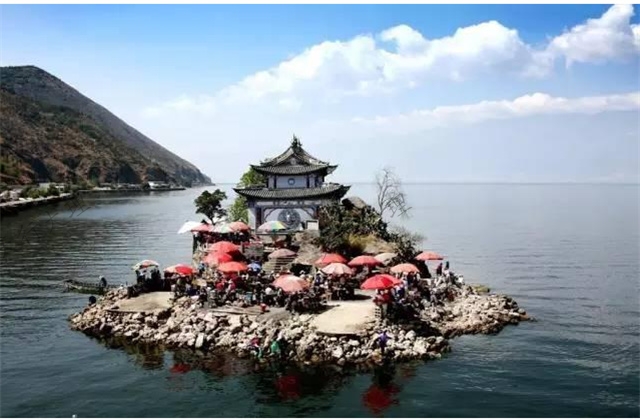 小普陀是洱海最小也最美的一個(gè)島嶼,海天相連彩云就在自己的前面。