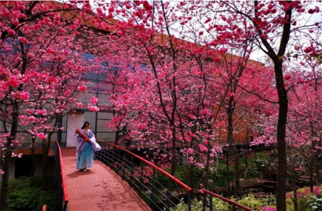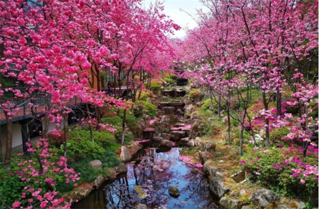 走在櫻花溪谷邊,邊賞美景,邊靜聽溪谷鳥鳴,夾岸數(shù)百步,飽覽落英繽紛。