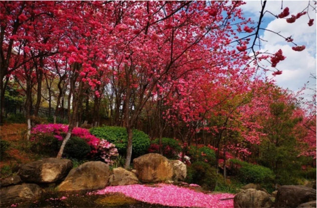 芳草鮮美,落英繽紛……”的美景,還有杜甫筆下“花徑不曾緣客掃”的意境,讓人浮想聯(lián)翩。