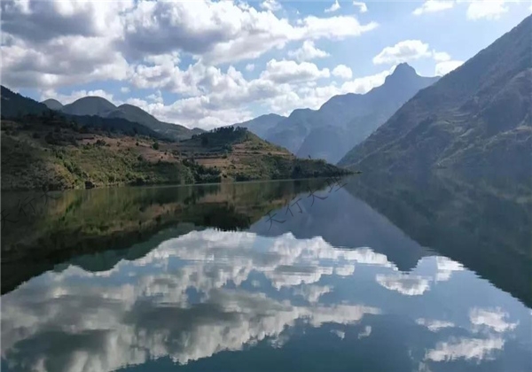 我們乘坐的船只朝著青華方向前進(jìn),一路風(fēng)光如畫(huà),藍(lán)天白云倒影在江面上,隨手一拍都感覺(jué)要出大片,還以為是穿越到了桂林山水間。