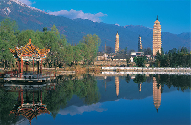 大理三塔”,是中國著名的佛塔之一。三座古塔堪稱大理地標,佛教盛行大理的見證,也是是蒼山洱海的勝景之一。如今看到的寺院是重建的,而三塔已有千年歷史的遺跡,是來此的最大看點。